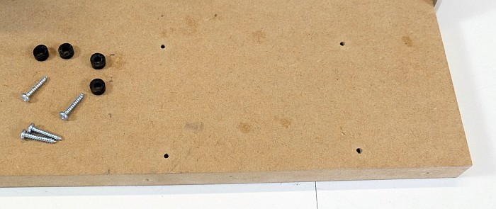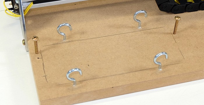 Visser les 4 crochet et les 2 vis 4x40, sans traverser le plateau ni faire de bosse sous le plateau.