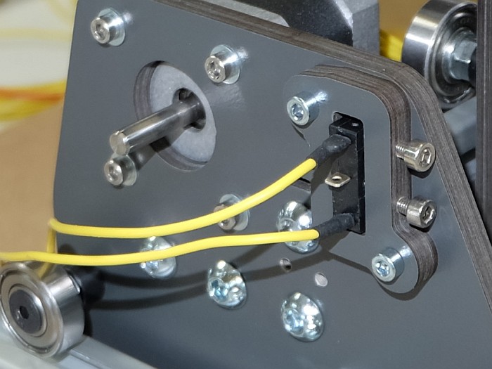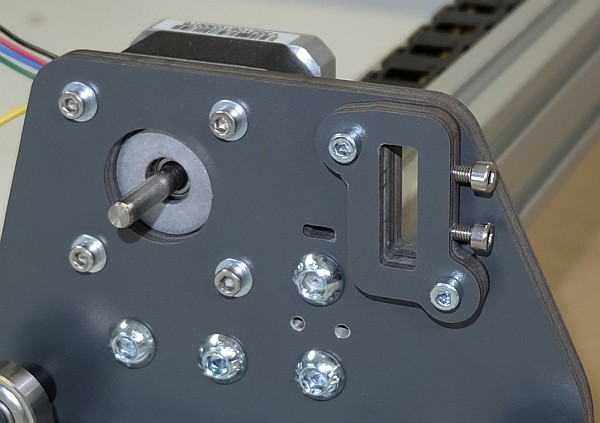 Les interrupteurs de fin de course X et Y se montent dans 2 petits supports en stratifié compact. Ils sont simplement pincés par des vis de pression.